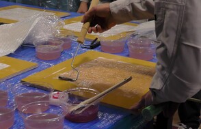 2日目の実習セミナーでは、VaRTM成形の実演見学や、ハンドレイアップ成形、FRPの接着について実際に体験していただくプログラムもあり、皆さま熱心に取り組んでおられました。